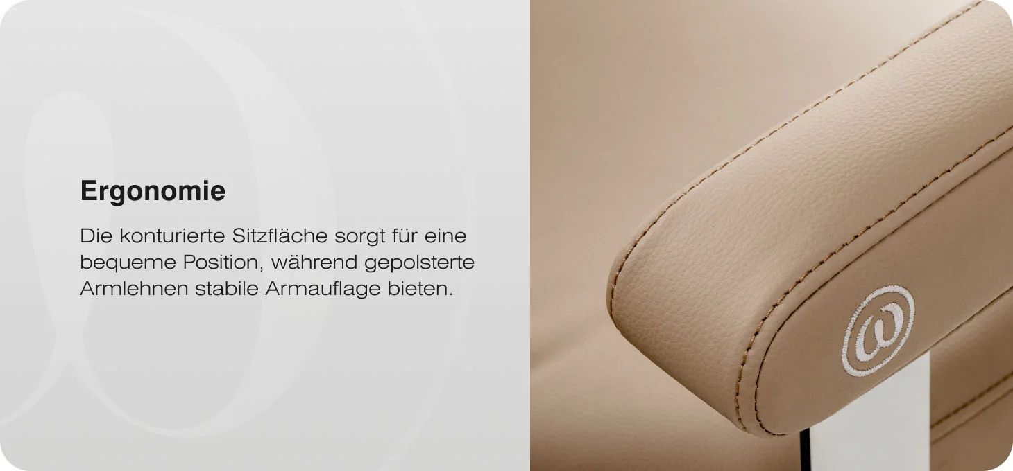 Ergonomische, gepolsterte Armlehnen: bieten stabilen Halt und angenehme Unterstützung.